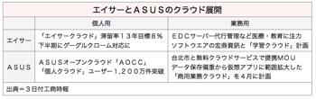 台北市と華碩電脳(ASUS)は2日、共同で個人、企業、教育機関、医療機関向けなど5項目の無料クラウドコンピューティングサービスを推進することで覚書(MOU)を交わした。うち個人向けの「市民雲」サービスは5GB(ギガバイト)のクラウドスペースを提供するもので、早ければ6月に試験運用を開始する。3日付聯合報などが報じた。