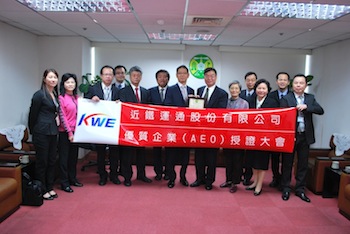 近鉄エクスプレスの台湾法人、近鉄ワールドエクスプレス台湾(KWE台湾)はこのほど、財政部台北関税局よりAEO事業者認定を受けた。台北、桃園、新竹、台中事業所が対象となる。