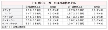 一方、同業の和碩聯合科技(ペガトロン)のノートPC出荷台数は第1四半期が約300万台で前期比20~25%減、3月は約90万台だった。同社の連結売上高は第1四半期が2,213億1,700万元で前年同期比28.92%増。3月が645億8,100万元で前月比5.95%減、前年同月比12.21%増だった。