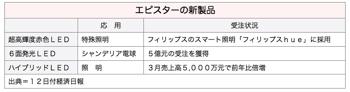 エピスターはこのほか、6面発光のLED電球向けに受注が5億台湾元(約17億円)以上あり、ハイブリッドLEDは3月の売上高が5,000万元と前年の2倍だ。