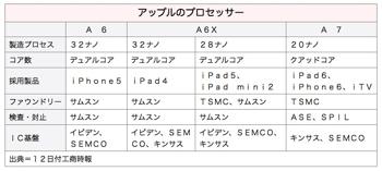 液晶パネル、メモリーなど部品調達の「脱サムスン化」を進めるアップルは、プロセッサーについても現行の「A6」の生産を委託しているサムスン電子からの調達をやめ、次世代製品ではTSMCに委託する方針とされ、既に両社は「A7」プロセッサーに関する機密データを共有し、生産の準備に取り掛かっているという。