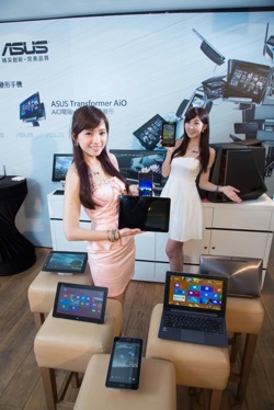 ASUSは15日、タブレット型PCにもなるノートPCなどタッチパネル搭載モデル「トランスフォーマー」シリーズの製品を一挙発表した。台北市で17日開幕の電子製品展示会、春季電脳展(ソフテックス)でのノートPC販売台数目標を前年比2割以上成長、タブレットPCでは同2倍成長と目標に掲げた。