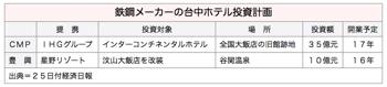鉄筋大手の豊興鋼鉄が、日本のリゾート運営大手、星野リゾート(長野県軽井沢町)との提携で、台中市の谷関温泉で10億台湾元(約33億円)を投じ、2016年の営業開始を目標に高級温泉旅館を建設する。同社がホテル業界に進出するのは初めてだ。25日付工商時報などが報じた。