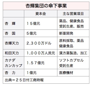 杏輝の中国子会社、杏輝天力杭州薬業および新疆和田天力沙生薬物開発(和田天力)は4,000万人民元(約6億4,000万円)を投じて原料工場の増設や加工工場などの建設を進めており、今年第3四半期末に稼働する見通しだ。