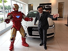 台湾アウディの科技躍進バージョン「A6」発表には、世界に先駆け台湾で同日公開の映画『アイアンマン3』も応援に駆け付けた。180台の限定販売だ(24日=中央社)