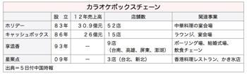 また業界関係者は「衣・食・住・教育・娯楽」のうち景気低迷時に真っ先に予算が削られるのは「娯楽」だが、「食」は影響が小さいためカラオケ店が飲食業に進出するのは必然だと指摘した。