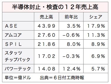 ガートナーは、昨年の成長が小幅にとどまった要因として、▽2011年からのパソコン需要の落ち込みが12年も続いたこと▽10~11年にかけて封止・検査市場で大型投資が行われて生産能力が過剰となり、ライン稼働率の低下を招いたこと──を挙げた。