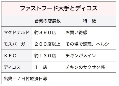 ディコスは台湾系の中国食品・流通最大手、頂新国際集団が現在、中国で約1,500店を展開している。今年は中台で400〜500店を出店し、2,000店超えで売上高100億人民元(約1,600億円)を目指す。台湾市場を試金石に、将来は東南アジア展開も視野に入れる。