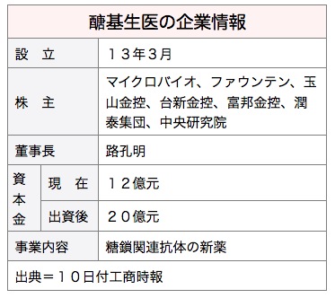 醣基生医には、DBVのほか潤泰集団、玉山金融控股が出資する予定で資本金は20億台湾元(約68億円)が見込まれる。