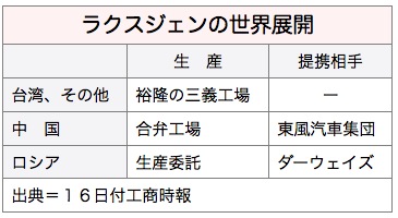 またラクスジェンは来年、多目的車(MPV)をロシア市場に投入する予定だったが、訪台したロシアのディーラーからセダンの評価が高かったため、セダンに変更する可能性もある。