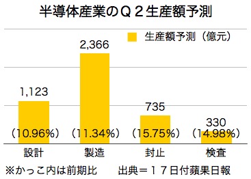 また今年通年の生産額は1兆7,856億元で、前年比9.3%の伸びを見込んでいる。台湾半導体業界は第2四半期に底打ちして、第2、第3四半期と成長が続くとの見方だ。
