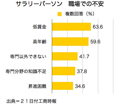 このほかの理由としては、▽専門以外に得意分野がない、41.7%▽専門知識の不足、37.8%▽昇進が難しい、34.6%──と続いた。