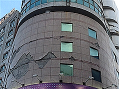 震度6の揺れに見舞われた雲林県斗六市では、繁華街ビルの外壁が大きく剥がれ落ちたがけが人はなかった(2日=中央社)