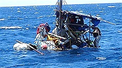 あわてて駆け付けると、漁師の言葉通り、波に打たれて壊れそうないかだが海を漂っており、その上には西洋人の男が足を水に浸しながら座っていた。