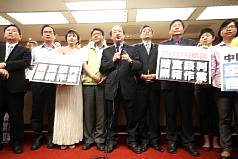 ボイコットした野党議員ら。台湾側の事務所が台湾地区出入境許可証(入台証)を発行することに、中国が難色を示していると伝えられ、民進党などが「主権の矮小化」と反発している(20日=中央社)