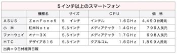 「ZenFone」のうちディスプレイサイズ5インチの「ZenFone5」は、本体価格が1.6ギガヘルツ(GHz)版で4,490台湾元(約1万5,000円)だ。中国の小米科技(小米、シャオミ)が5.5インチの「小米ノート」で約3,965元を実現しているものの、中国以外の大手ブランドとしては踏み込んだ低価格で注目を集めている。