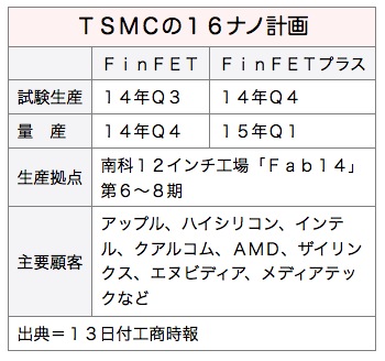 TSMCはインテル、サムスン電子との激しい競争から、24時間交代勤務の「夜鷹計画」で10ナノプロセスの研究開発(R&D)を進めると同時に、16ナノFinFETプロセスの量産入りを急いでいた。