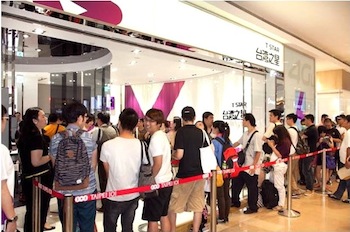 台北101旗艦店では、開店記念セットの販売が行われることもあり、多くの人がオープン前から詰め掛けた(台湾スターリリースより)