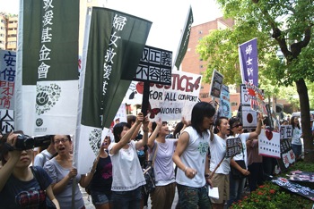 日本軍のいわゆる従軍慰安婦問題で、各国の支援団体が「メモリアルデー」としている14日、台湾の婦女救援基金会などのメンバー数十人が日本の対台湾窓口機関、交流協会台北事務所前に集まり、日本政府の正式な謝罪や賠償などを求めて抗議集会を開いた。15日付中国時報が報じた。