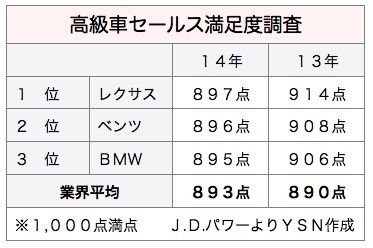 調査対象は昨年7月から今年2月までに高級車を購入した512人。アウディやボルボはサンプル数が少なくランキング外となった。