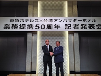 アンバサダーホテルは、台北アンバサダーホテルの場合、日本人客が5~6割を占めると説明。東急ホテルズの会員は44万人に上り、ポイントの相互付与で日本人客のアンバサダーホテル認知度向上を期待している。
