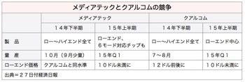 4G対応チップの最低価格は現在12米ドル以上。クアルコムとの低価格戦に備え、メディアテックは社内で、1週間でも早く同レベルのチップを量産するようハッパを掛けているようだ。