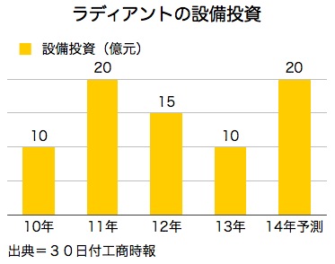 ラディアントによると、設備投資の3分の1を小型モジュール生産ラインの射出成形機、自動組立機購入に、3分の2をテレビ用モジュールの生産能力拡充、設備更新に充てる。