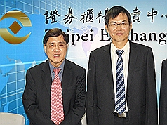 劉紹宗AAT董事長(左)は、最終製品の薄型軽量、小型化に伴い、顧客から電源管理ICやMCUの統合型製品を要望されており、来年初めにも発売すると述べた(5日=中央社)