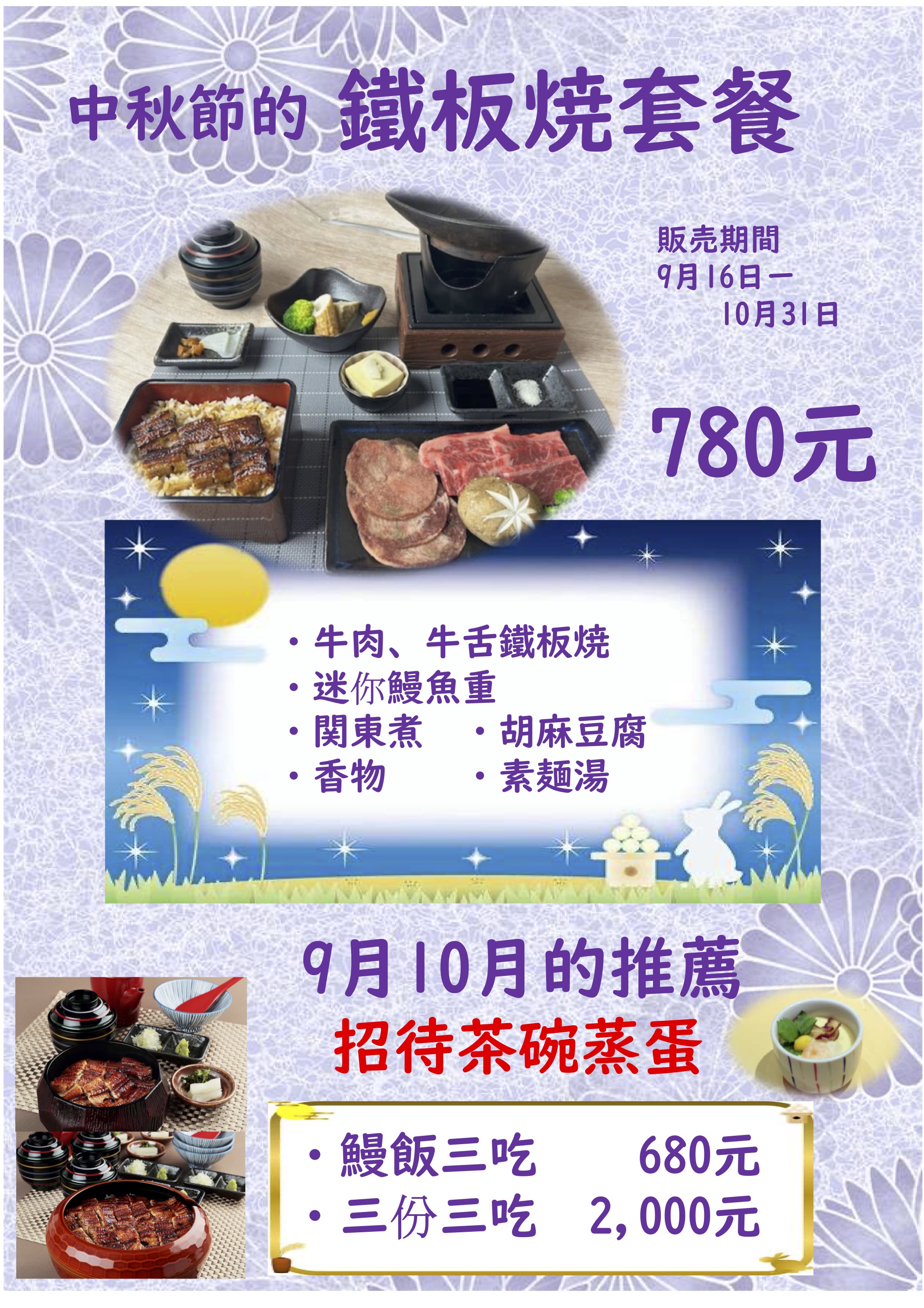 ・中秋節に向けて『牛肉と牛舌の鉄板焼定食』を期間限定メニューで販売いたしております。